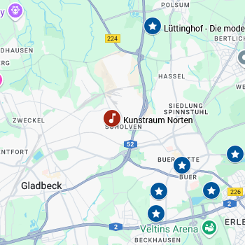 Ein neuer Raum für Kunst in Gelsenkirchen-Scholven, betrieben durch die Norten-Stiftung, zur Förderung von Kindern und der bildenden Kunst im Ruhrgebiet. Das Gebäude, ein umgebauter Coop Supermarkt aus den 1960ern, spiegelt den Standort wieder. Über 600 m² stehen für wechselnde Einzel- und Gruppenausstellungen und jetzt auch für unser Festival zur Verfügung. Seit April diesen Jahres schmückt den Platz vor dem Kunstraum die Skulptur B 9 (vier Körper im geschlossenen System) von Günter Tollmann aus dem Jahre 1979. Während des Konzerts ist eine Ausstellung des Gelsenkirchener Künstlers Rainer Kleinschmidt zu besichtigen.